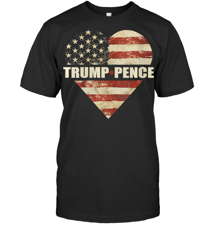 Trump Pence In Weathered American Flag Split Heart T Shirt